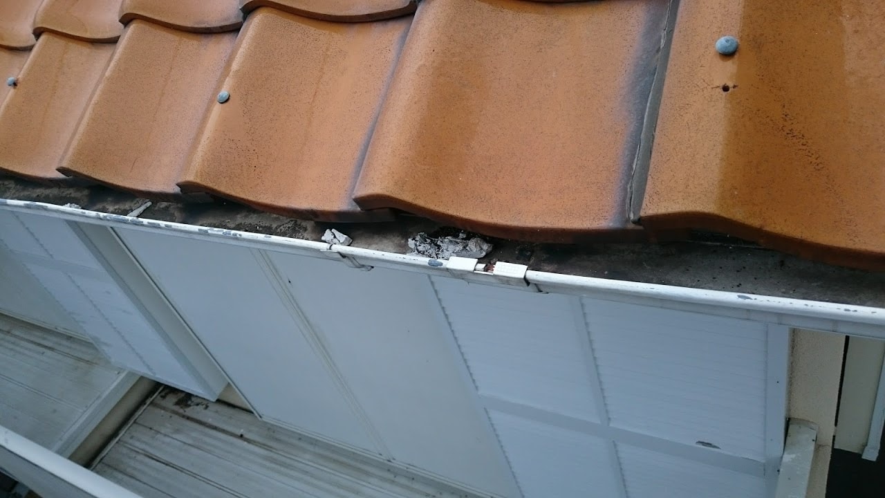 また、雨樋の中は、↓↓こんな風に、棟から落ちてきた三日月漆喰が溜まっていました。