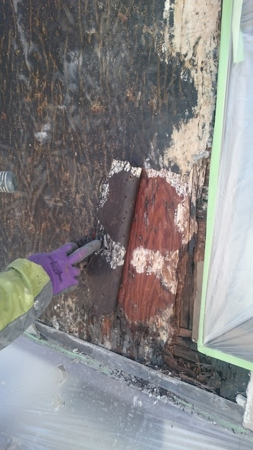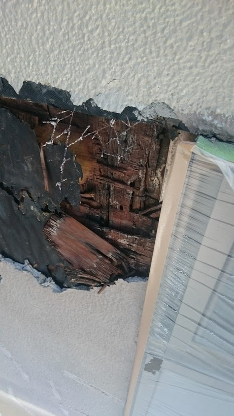 腐っていました。モルタル壁をはがしてみますとこんな感じでした↓↓↓