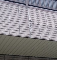 私の心中「バルコニーの壁が壊れる?もしかして、セキ○イハウス?」