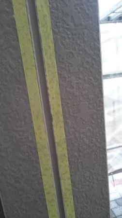 外壁や開口部の目地にマスキングテープを張り、コーキング処理の下処理を丁寧にやります。