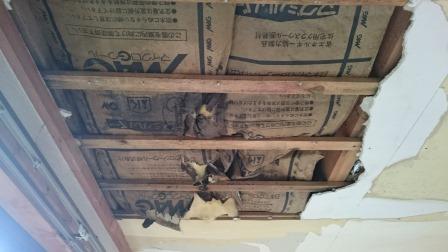 内装クロスの下地を剥がしてみると、見るも無残に、断熱材までビチョビチョです。