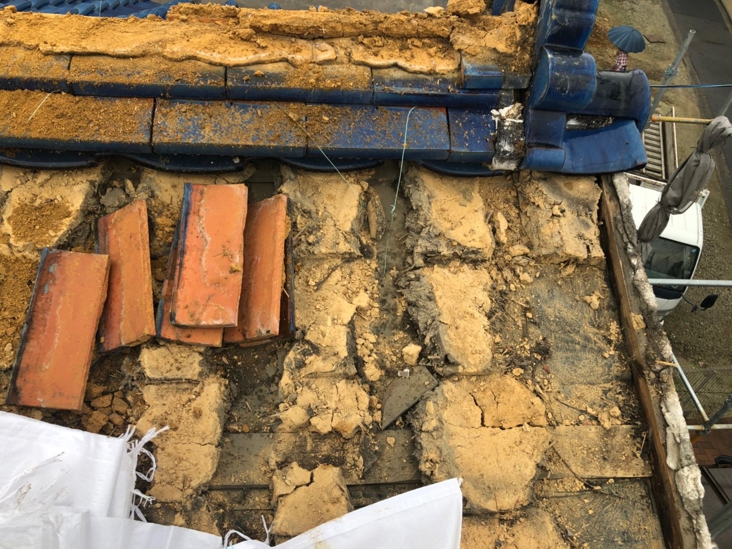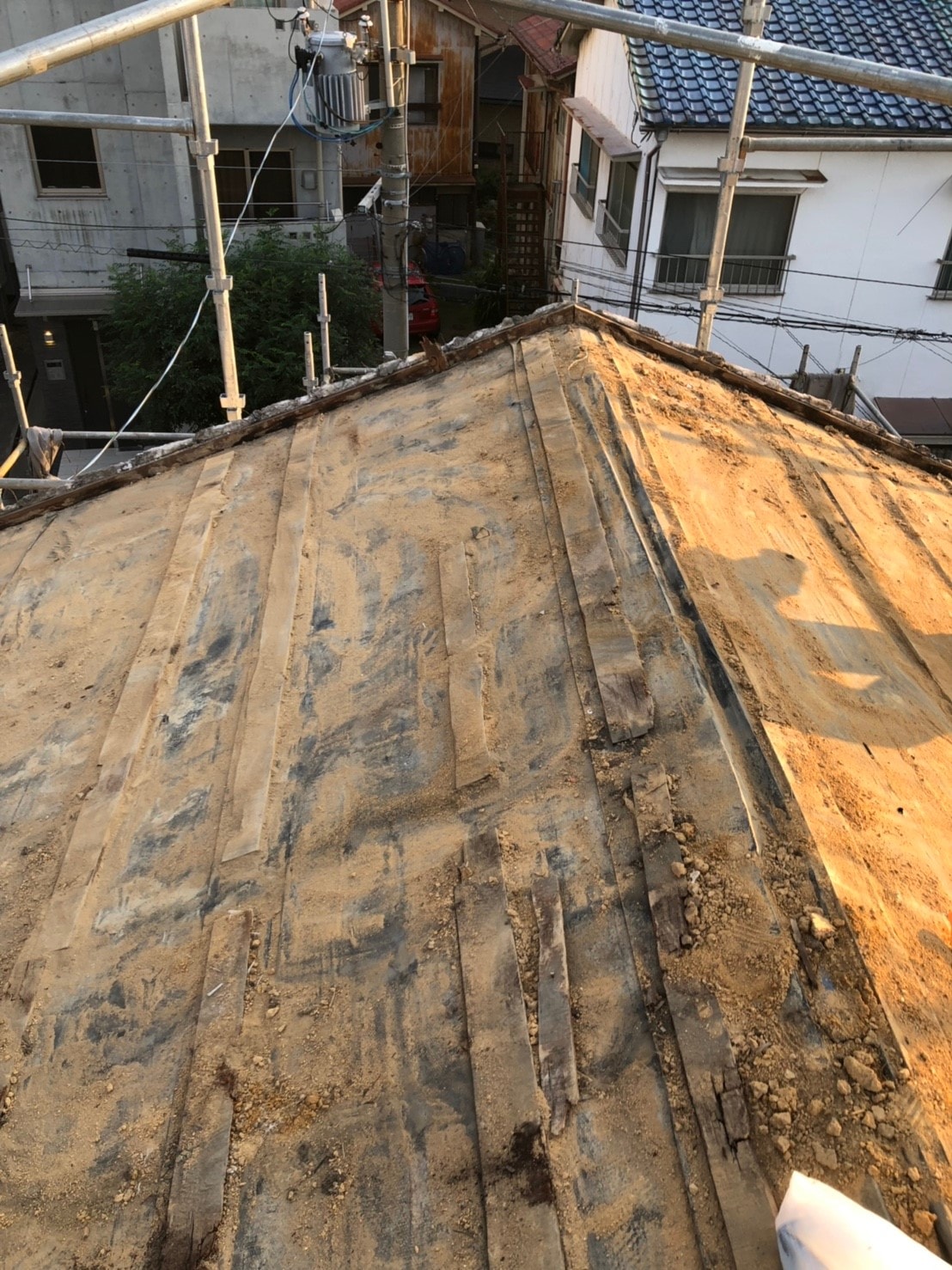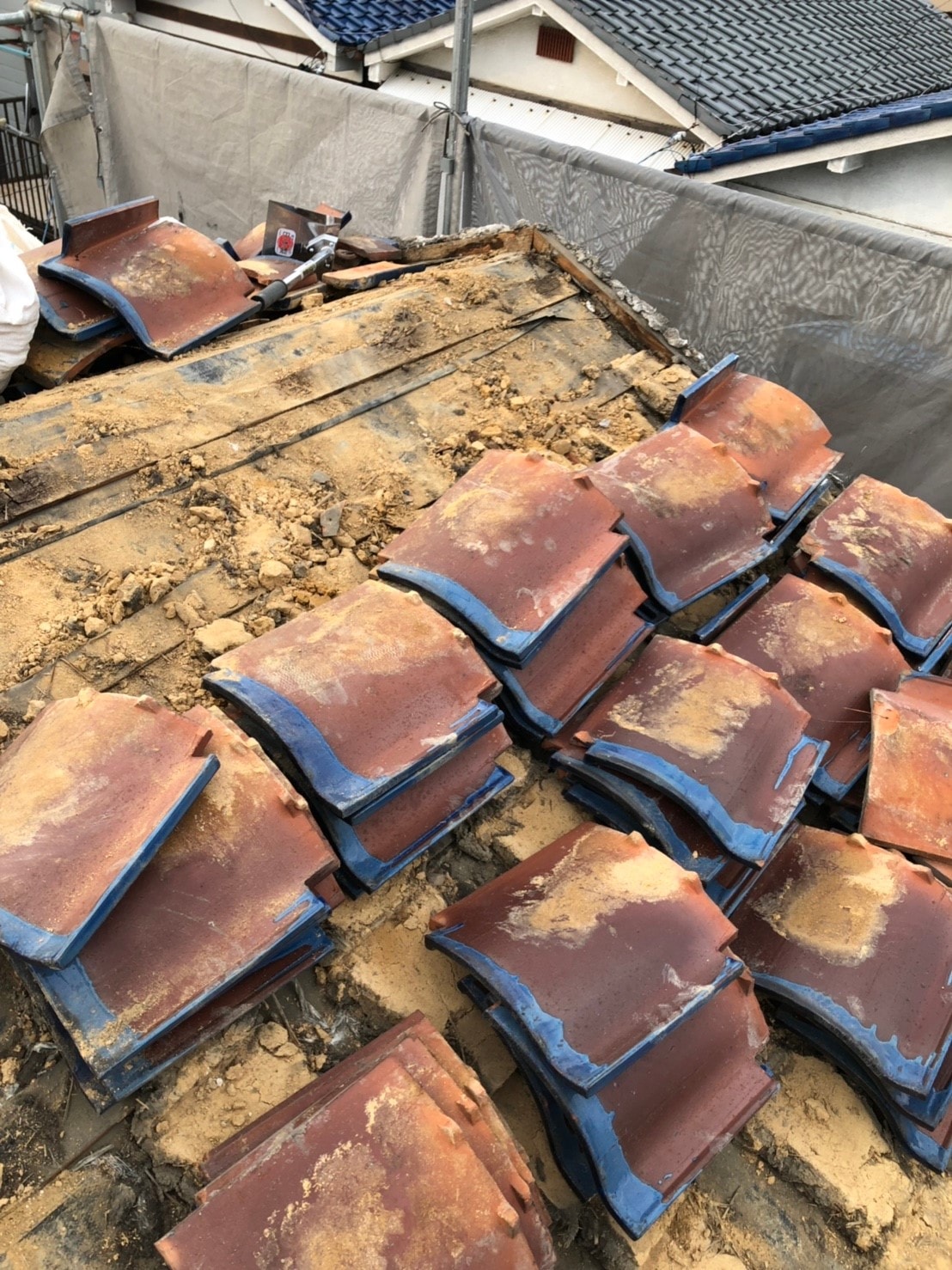 今回瓦を撤去してみて感じたのは、ルーフィングや野地板に穴が結構空いていて雨漏れ寸前のところを見る事がでたことです。外見は問題なくても中がだめになってる事が結構あると職人さんも言っておりました。