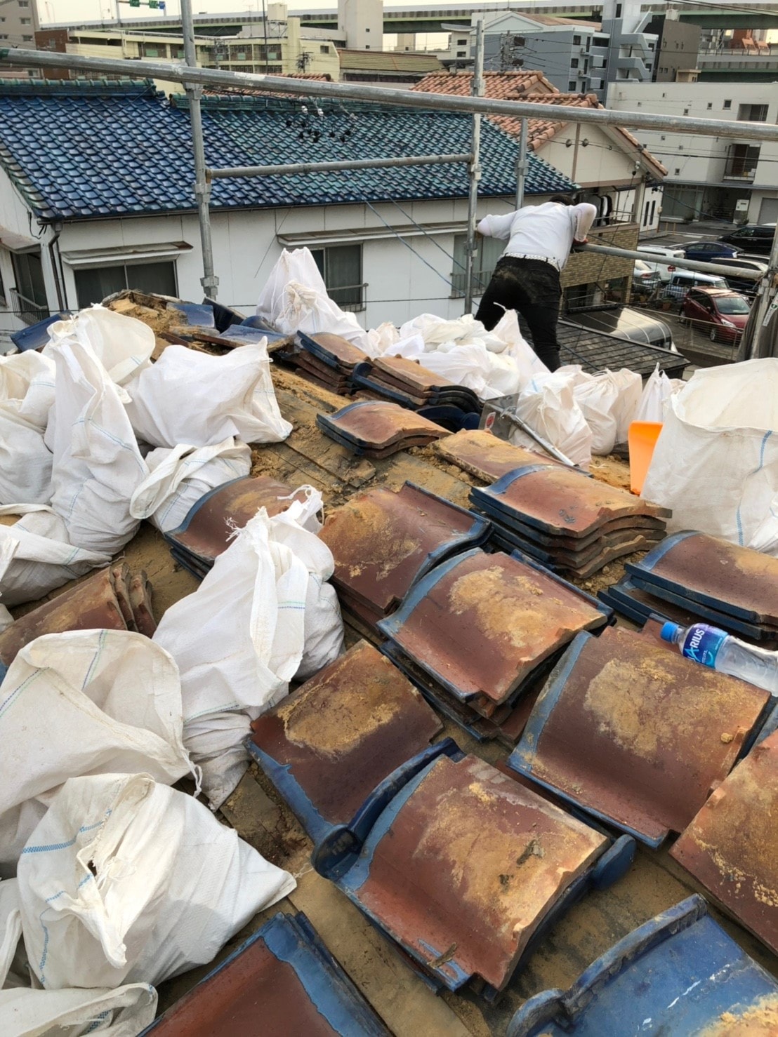 今回は職人さんのお手伝いで瓦屋根撤去のお手伝いしました。想像以上の重労働で、職人さんには頭がさがります。あまり戦力にはなりませんでしたが、いい経験ができました。