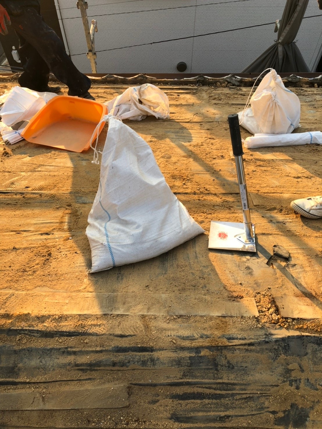 これからコンパネを貼、ルーフィングを貼 横暖ルーフを施工する工程となっております。