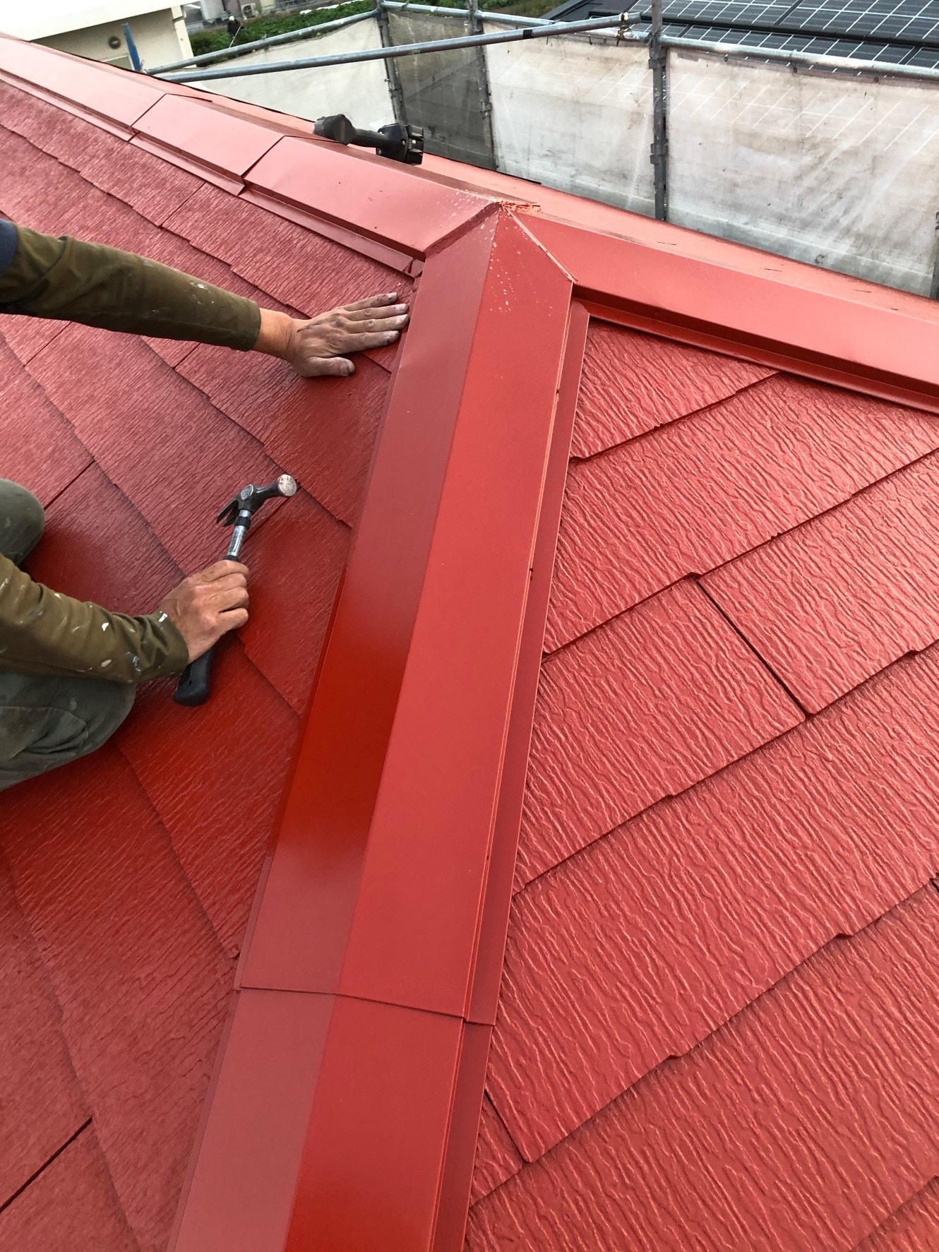 棟板金、経年経過や強風等の理由で釘が浮いてきます。