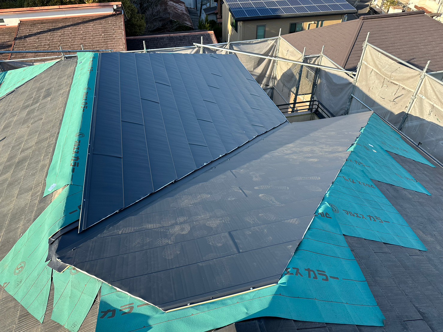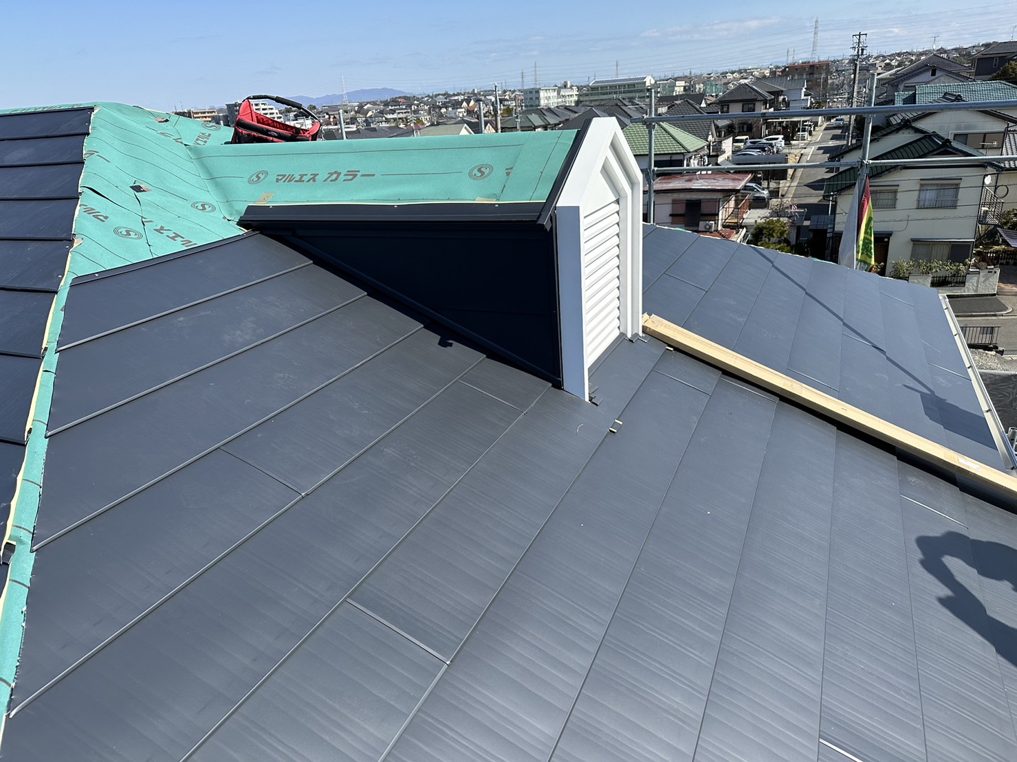 名古屋市緑区 外壁塗装・屋根の上張り工事の施工写真です。