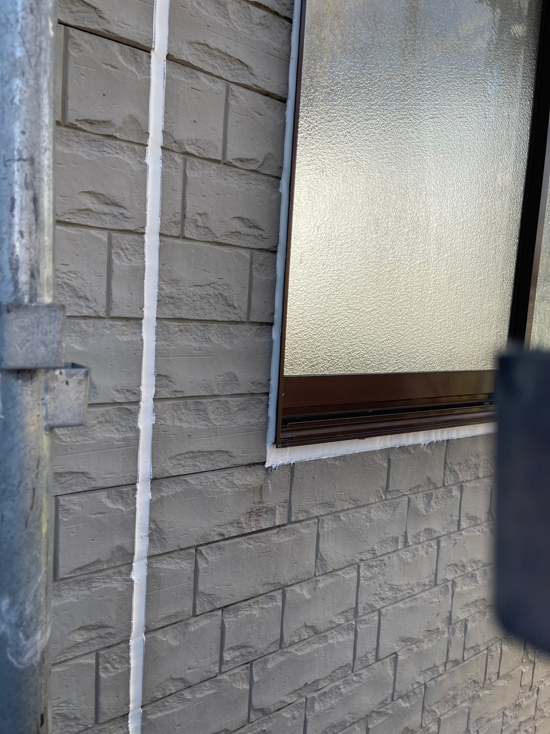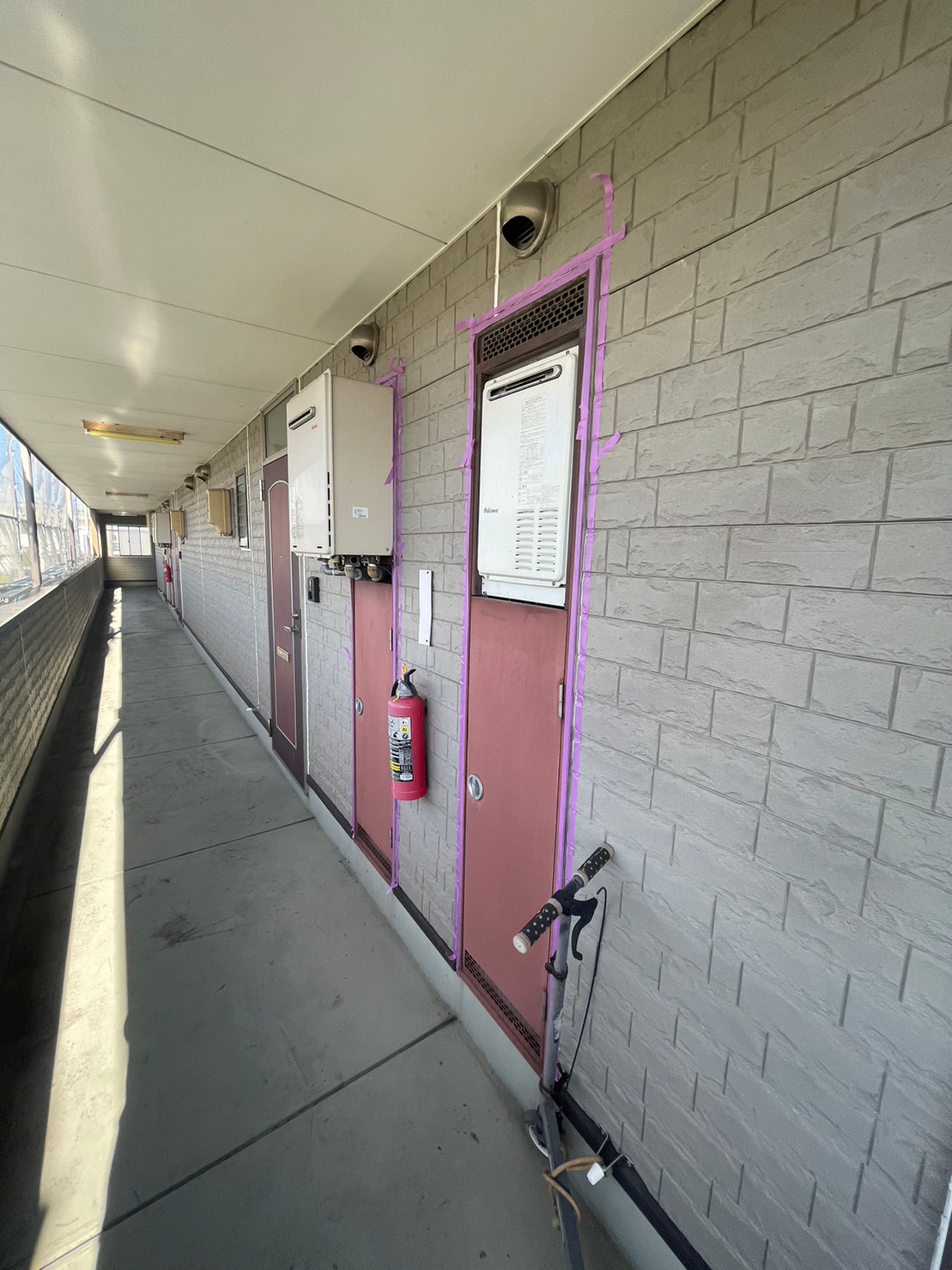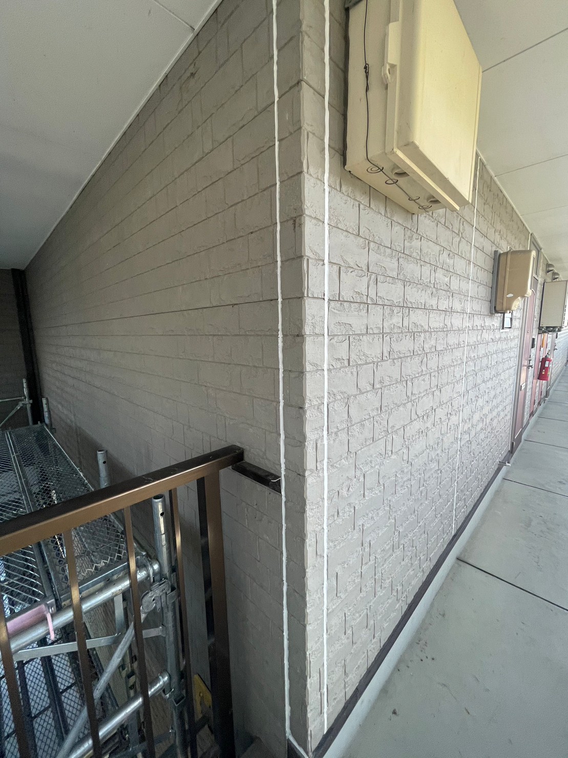 高圧洗浄も終わりコーキング上塗りのためのマスキングをします。