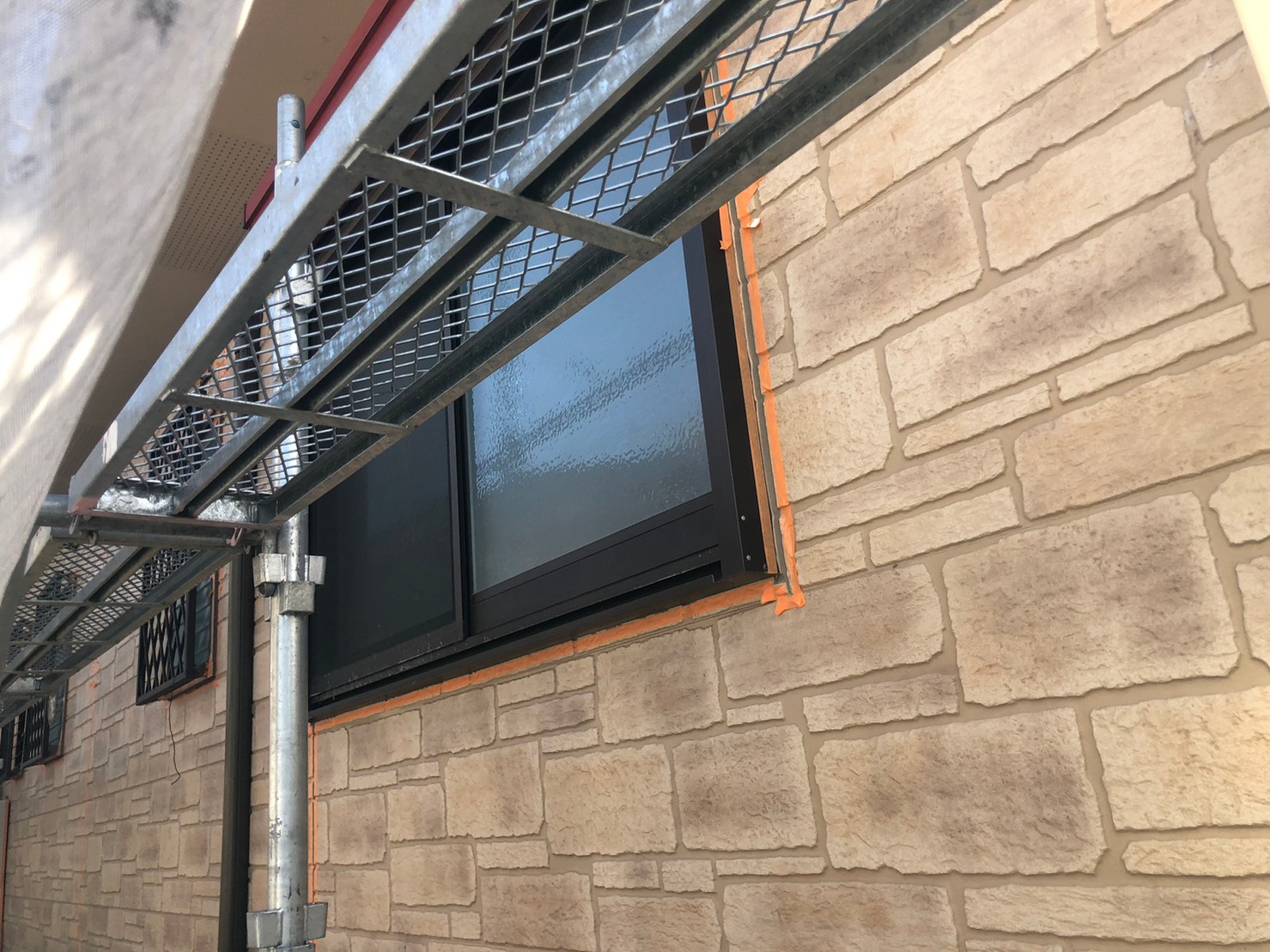 既存コーキングの撤去とマスキング