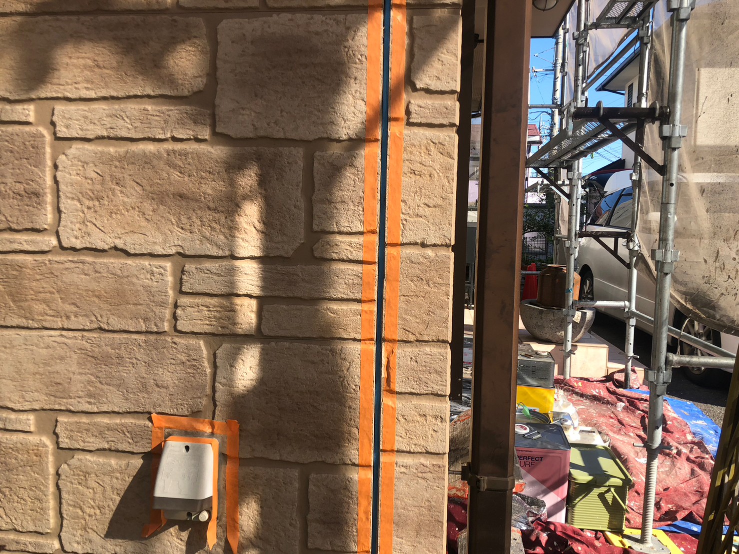 塗装のための養生をしていきます